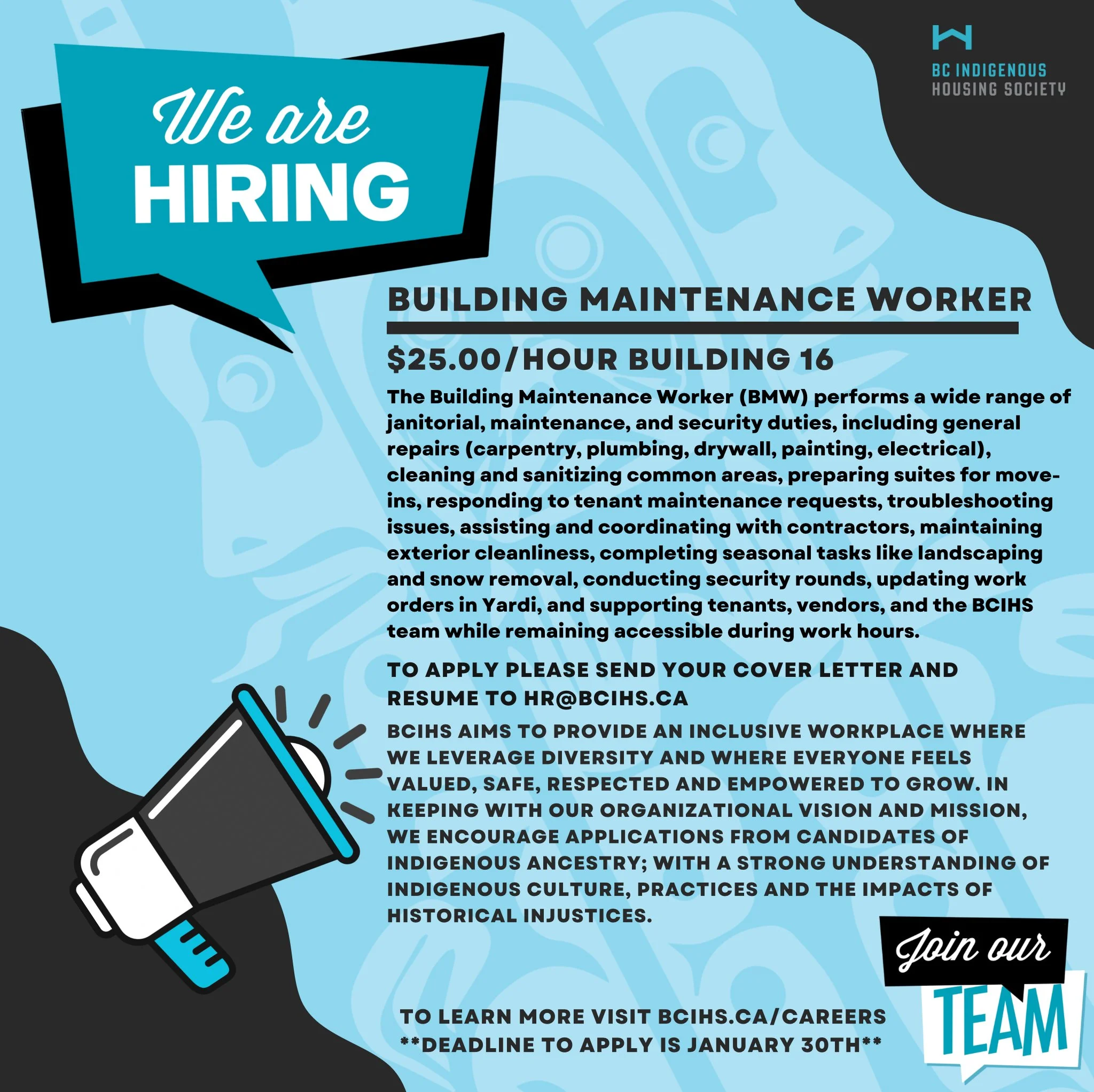 Careers Interested applicants can send cover letter and resume to HR@bcihs.ca click on the image below for more details.